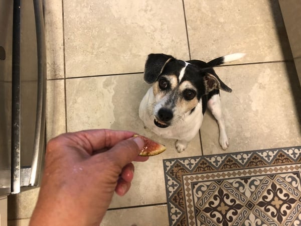 I also learned that my dog Boz developed a liking for figs this year so he was my faithful kitchen helper as I processed all of my harvest.