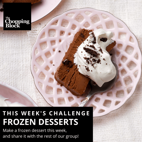 Frozen desserts are this week's challenge for our private Facebook group members. Join, make a frozen dessert and share it with our group to inspire others. Or, share your pictures from that virtual class!
