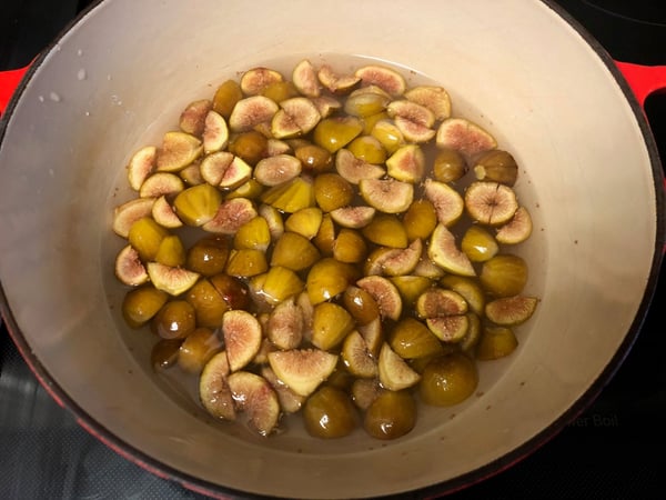 I added the roasted figs to a simple syrup made with equal parts sugar and water and let them simmer on low heat for about a half hour.