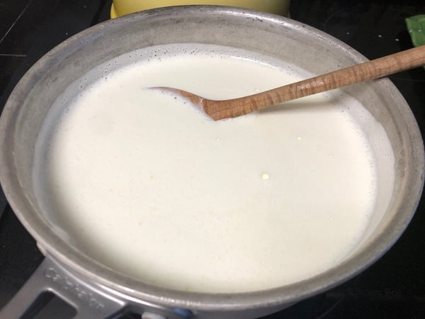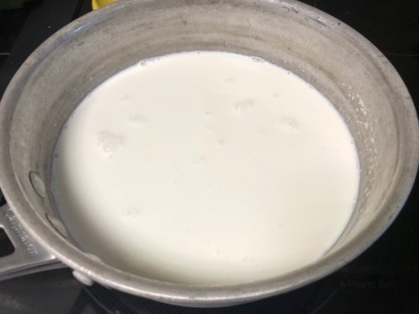 - Place the milk, cream and vanilla in a large saucepan and bring to the boil.