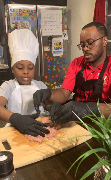 Tre, age 8 and his dad, Johnnie made a cheeseburger with pepper jack cheese