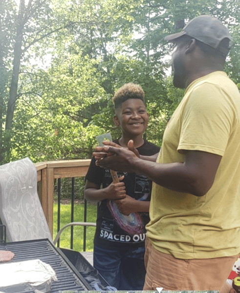 Tre: I love that my dad shows that he cares about me. He is caring person. He challenges me because he believes that I can be great. I love when he makes time to practice football drills at home and play catch.