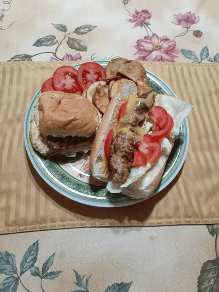 Ron’s Favorite Burger and Italian Sausage with Peppers