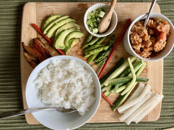 We've always heard that people eat with their eyes first - and it's true. A vibrant plate with thoughtful textures and colors can instantly make a food item more appetizing and enticing. There’s also the added potential of causing eaters to slow down and savor their food. Try slicing food on the bias (i.e. diagonal) or providing an edible food “holder” for smaller bites that diners can just pick up and enjoy.