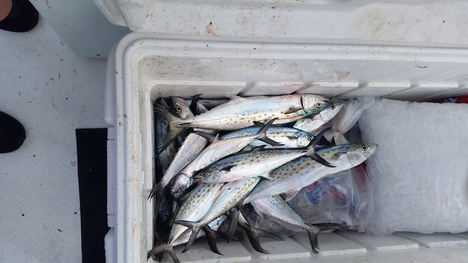 Our captain took us out to the Atlantic Ocean on a beautiful vessel fully equipped with fishing poles, coolers, cleaning stations, and of course, bait. When we got far enough out, we were able to cast our lines. Within 2 minutes, no exaggeration, my husband had caught his first mackerel. He was beyond thrilled, but before I could congratulate him, I felt my line pull. This was it! I was reeling in the line as best as I could. It was harder than I thought it would be! Mackerel are quite strong, very fast, and love to jump in and out of the water. I wasn't about to give up though, even if my husband had already caught his second fish. I kept at it and finally I had my first mackerel in the boat. After that first one, it got much easier and next thing we knew after about thirty minutes we had a cooler full of fish. It was exhilarating! We we so proud of ourselves.