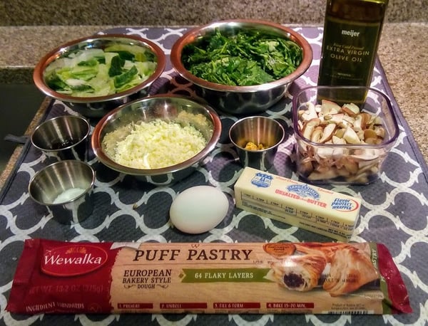 Line a sheet pan with parchment paper and lay in the puff pastry. Poke the puff pastry with a fork every few inches.