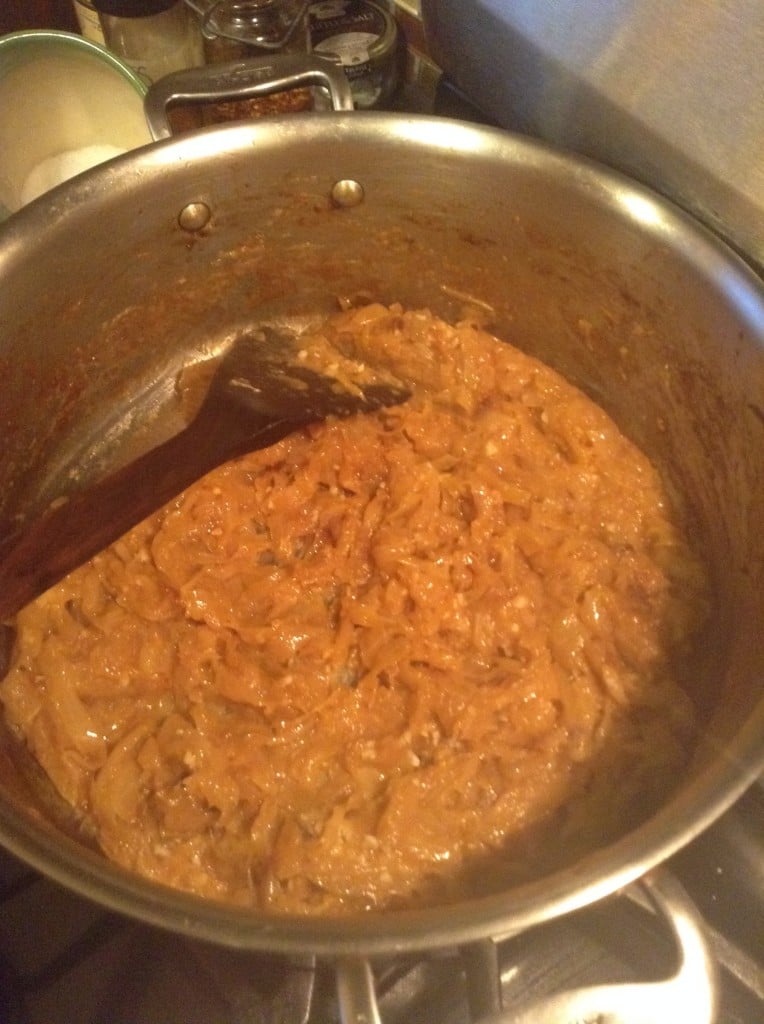 As you can imagine, it all starts with onions. Use a heavy pot such as a Le Creuset French Oven to caramelize the onions. Don’t rush this step, because this is where you develop a load of flavor. Slowly sauté the onions in a little butter until they are golden brown, and have developed a deep caramel color. This steps takes a good 30 to 45 minutes, so be patient!
