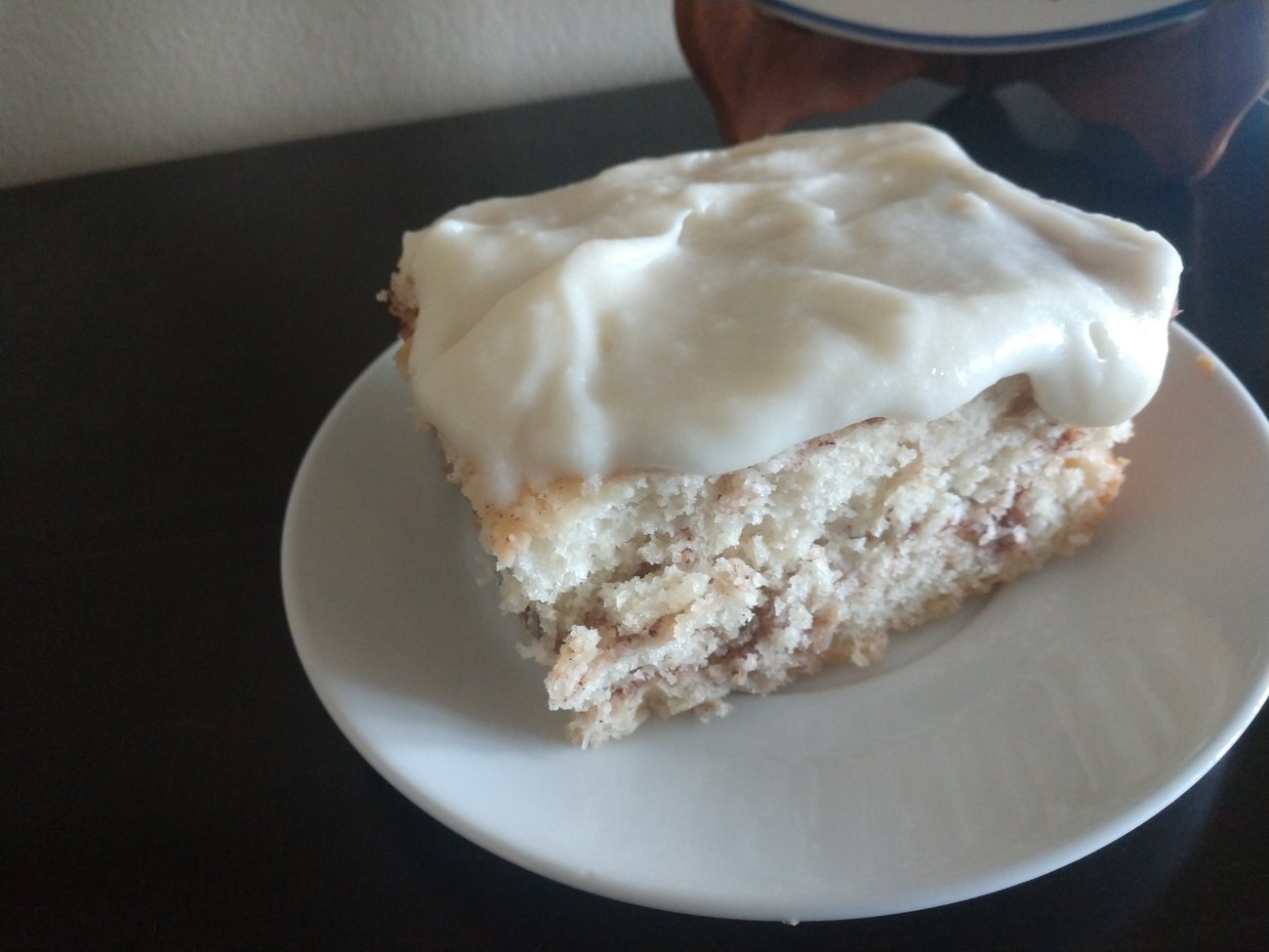 Thankfully I didn’t have any trouble with making the icing for the cinnamon rolls. I have to say I was nervous the entire time the cinnamon roll dough was in the oven baking. I wasn’t entirely sure that I had really done the best course correction of combining recipes but no matter the outcome I was determined to see this through to the end.