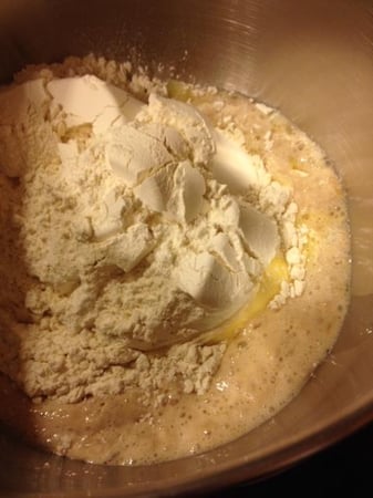 On the first night, I made the dough and kneaded it until smooth. I use a Kitchen Aid stand mixer, because they are the undisputed rulers of stand mixers of all time. There was no way I was going to stay up all night, so I place the kneaded dough in a bowl, covered it with plastic wrap, and popped it in the fridge. I then allow the dough to rise in the refrigerator for about 24 hours. The benefit of this is when you slow down the process by refrigerating the dough during the first rise, the yeast have time to grow and develop a great depth of flavor.