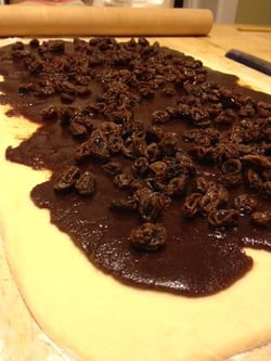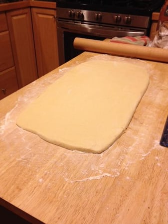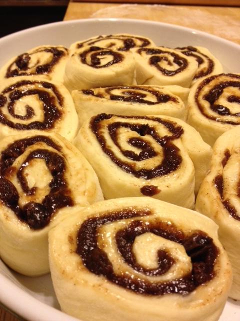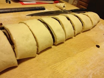 I rolled out the dough, added the filling ingredients, rolled it up into a jellyroll, and cut it into individual cinnamon rolls.