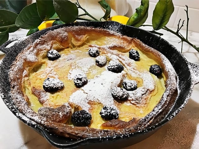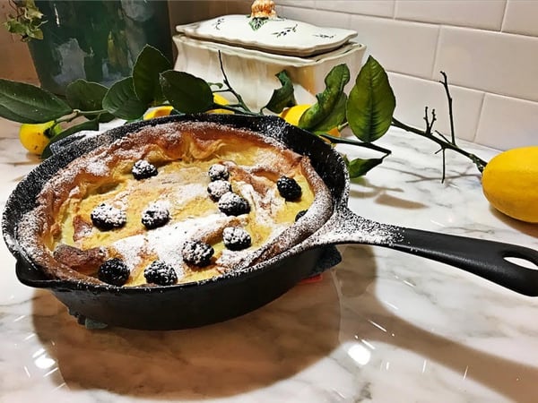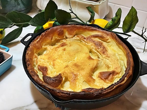 Dutch Babies have been a Forneret-family obsession since we first discovered them at a pancake house in Palm Springs many years ago. Eggy, crisp and lightly sweet, these instantly became a must-order whenever they were on the menu. Fast-forward several years and a move to Chicago, where I found myself living in an apartment building on Oak Street with a back door that led directly to The Original Pancake House (famous for their Dutch Babies and my idea of heaven)! These days, whenever my sister comes to visit, The Original Pancake House is one of our first stops. Since she’s coming in for Christmas, I thought I’d surprise her with a homemade version of these heavenly treats!