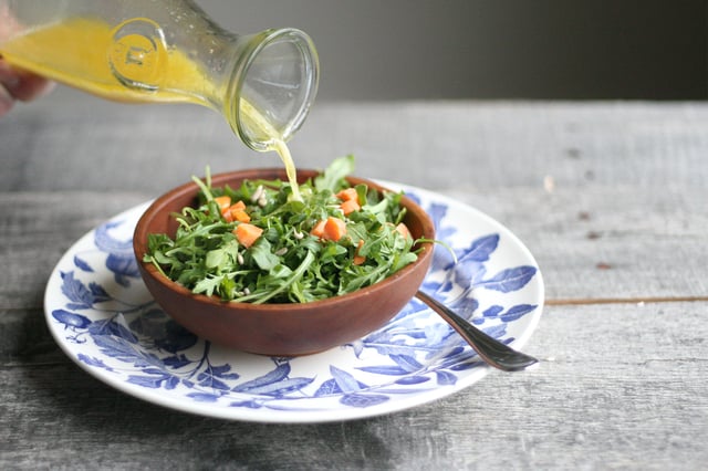 A salad recipe is pretty useless without knowing how to make a killer dressing to jazz it up. While you can just splash on some balsamic vinegar and olive oil and call it a day, try using this formula to take your dressings to the next level and make you actually want to eat a salad. If you are using stronger greens like kale or arugula in your salad, make sure you include a little something sweet in the dressing. Sweetness helps balance out bitterness on the palate. Kale-aphobes and children will especially appreciate this trick!