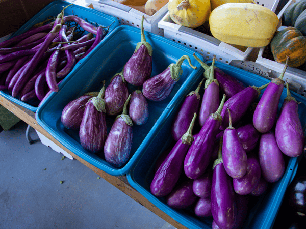 This summer I used globe eggplants from the grocery store, the most common type of eggplant in most US grocery stores, to create three very different, but all delicious dishes. Because eggplant contains a lot of water, some recipes will recommend that you salt the eggplant in advance to draw out some of the water prior to cooking, but I didn’t find that to be necessary when grilling the eggplant.