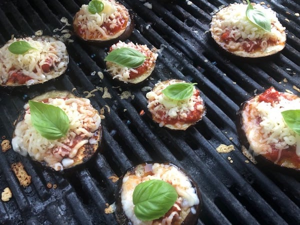 6. Grill eggplant over direct heat, about 3 minutes (I close the lid to keep the heat in).