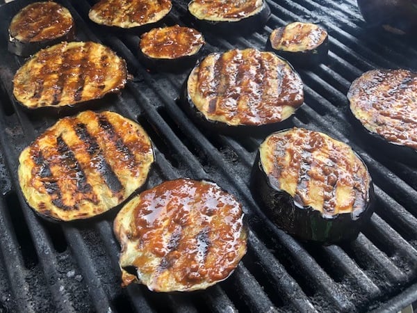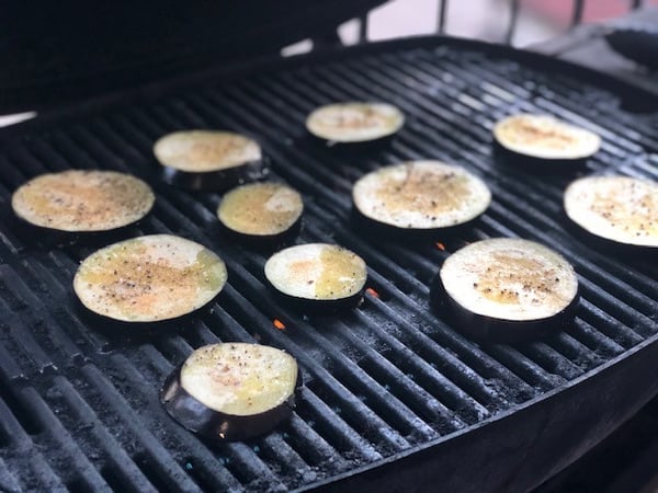 5. Grill eggplant over direct heat for 3 minutes, or until you have good color/grill marks.