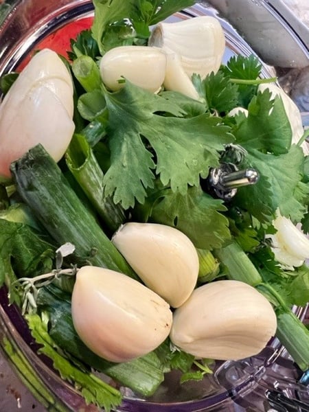 Epis is similar to sofrito which is used in Caribbean, Puerto Rican, Latin American and Spanish cooking. Traditionally, the epis is made with a mortar and pestle, in Haitian kitchens known as a munsh pilon. However, I like to do things as efficiently as possible, so I use my blender or food processor!