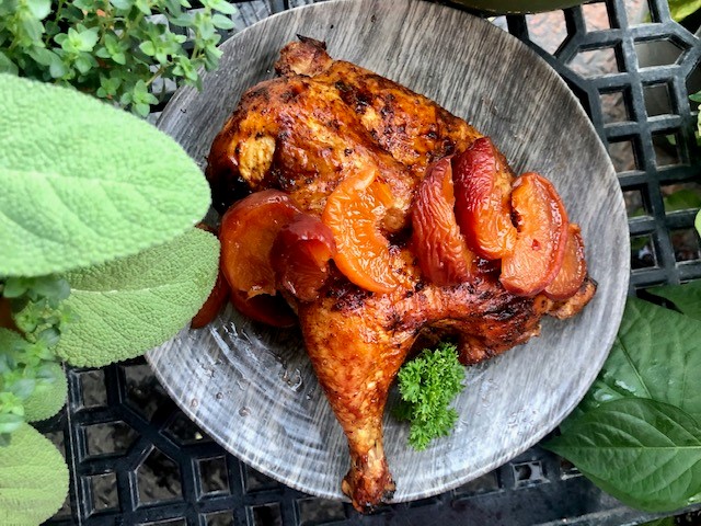 I decided to pair my cider can chicken with one of my other favorite summer indulgences – peaches. While peaches are delicious enough on their own, they are also a great addition to salads, sandwiches, compotes, pies, breads (like my peach basil bread) and so much more.