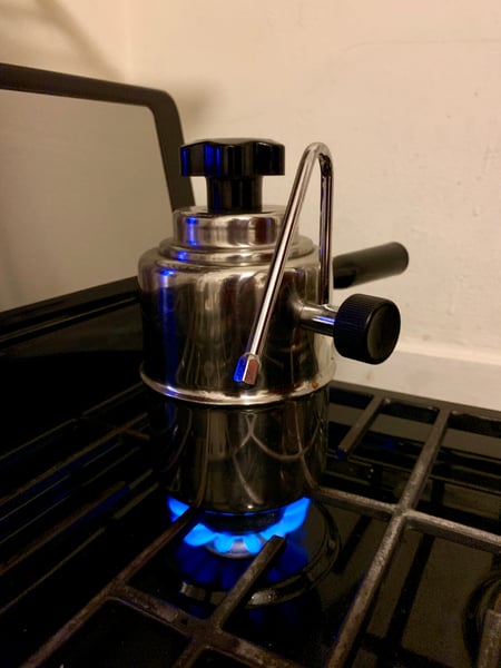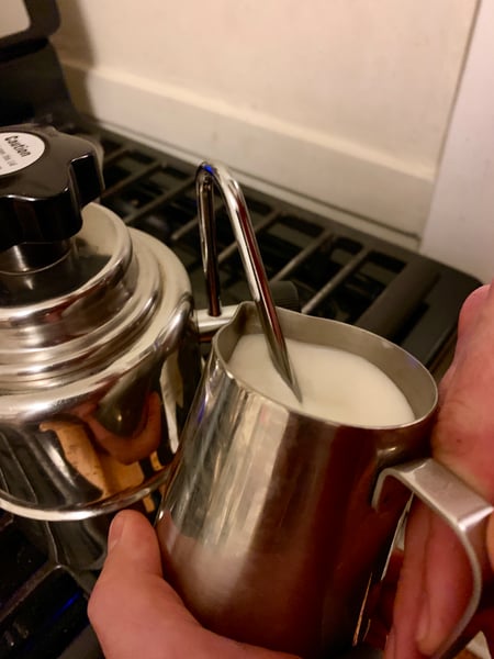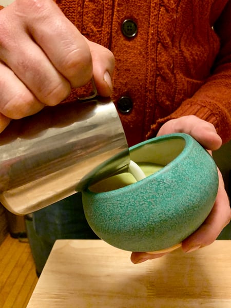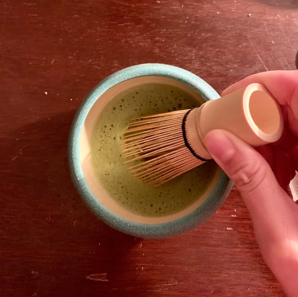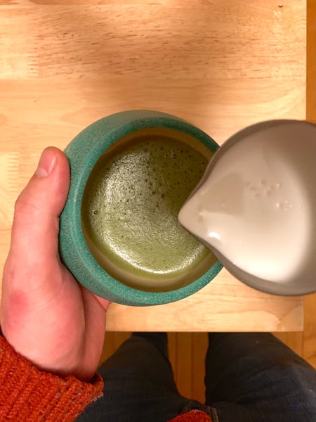 Alternatively you can whisk the matcha after the bloom without adding more water while you heat up your stovetop milk steamer (these things are more expensive than it seems like they ought to be, but they work pretty darn well).