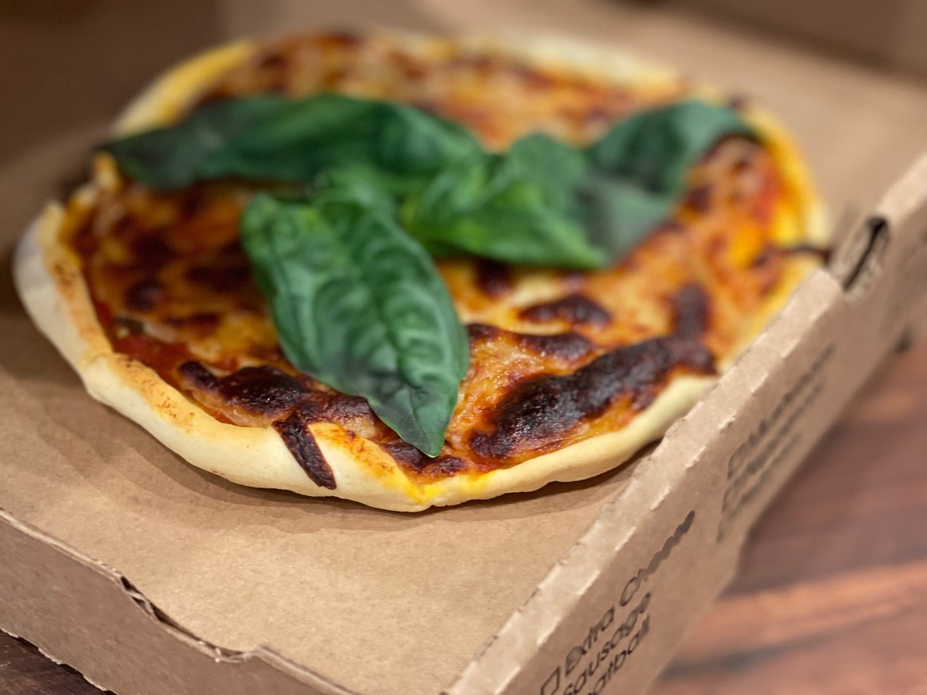 - Pull pizza out of oven and top with fresh basil or arugula.
