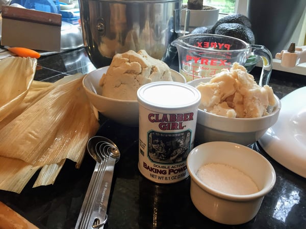 - With an electric mixer, beat the chilled lard with the baking powder until light in texture, about 1 minute. While continuously beating, add the masa in three additions.