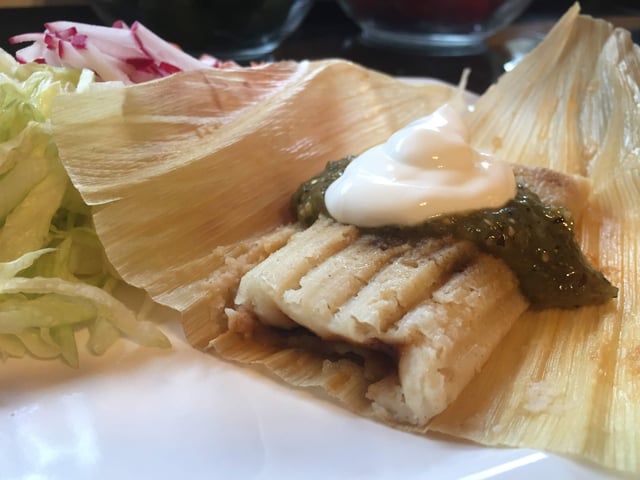 Because tamales are such a main event, we’re keeping the sides very simple. We served ours with an iceberg and radish salad, a scoop of guacamole, sour cream and salsa.