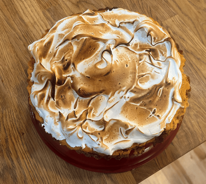 Without being overly sweet, the honeypatch squash tastes similar to pumpkin, but is much creamier. I’ve paired this recipe with a gingersnap crust, because I love the subtle spice that combats the creaminess of the squash in a really beautiful way. Because of the creaminess, I also topped the tart with a meringue which I torched purely for aesthetics, but if you don’t have a torch at home, whipped cream or powdered sugar are suitable replacements, and just the naked tart is awesome on it’s own as well!