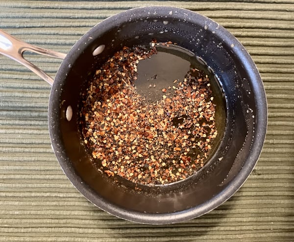 1. Simmer the honey and crushed red pepper flakes in a small pot over medium heat until the honey very lightly begins to bubble.