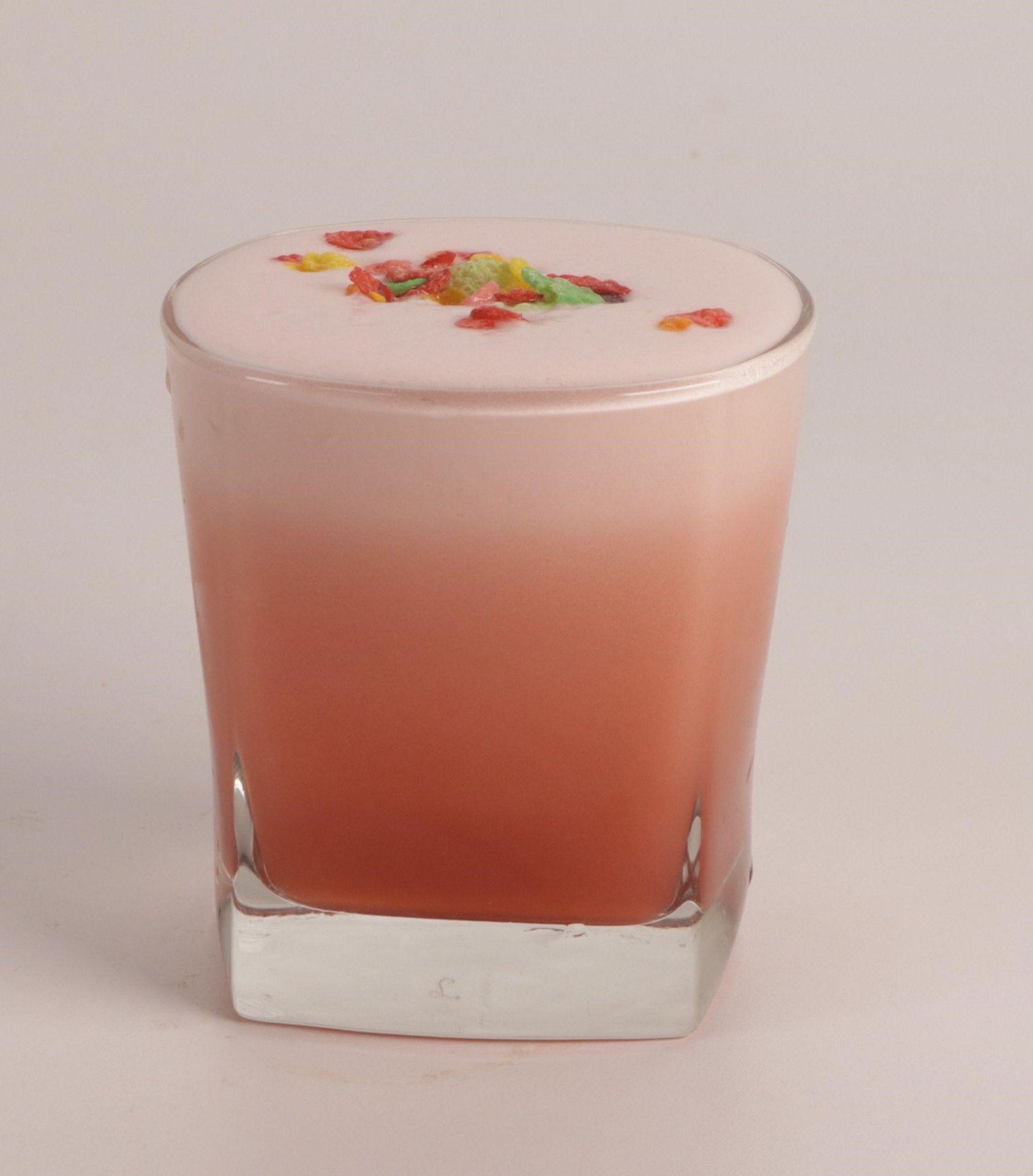 This cocktail embodies a bowl of fruity pebbles in a cup. It's perfect as a breakfast cocktail to replace your mimosa or even the whole breakfast for that matter!