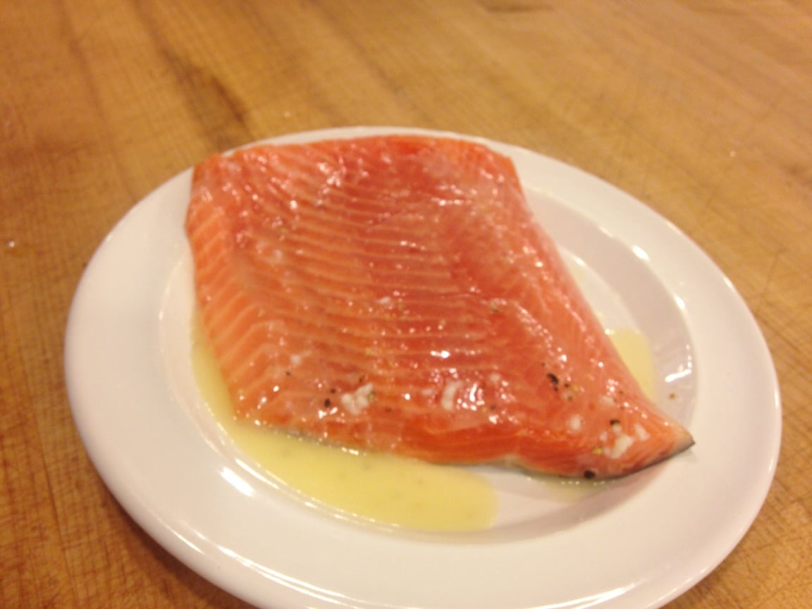The fish that was featured this week (it changes weekly) was Canadian Organic Steelhead. Steelhead has a lot of the same attributes as salmon does. It’s low in fat and high in protein. Everything I like my fish to be.