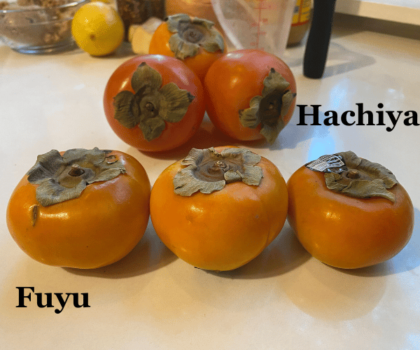 The hachiya variety of persimmon needs to be very ripe (like, very very ripe) in order to enjoy them. If they aren’t fully soft in texture, then they will be incredibly astringent. They should be a deep orange color and feel a bit squishy when gently pressed. Because the flesh is very soft, hachiya persimmons are typically used for baking. The flesh is pureed into a pulp, and mixed into quick breads (like muffins), cakes and cookies. To make haychiya persimmon pulp, cut the fruit into eight wedges, use a sharp knife to remove the skin, remove the seeds (yes, this variety has a couple of seeds that resemble an apricot pit) and place the fruit in a food processor. Puree until smooth and use in your baked goods.