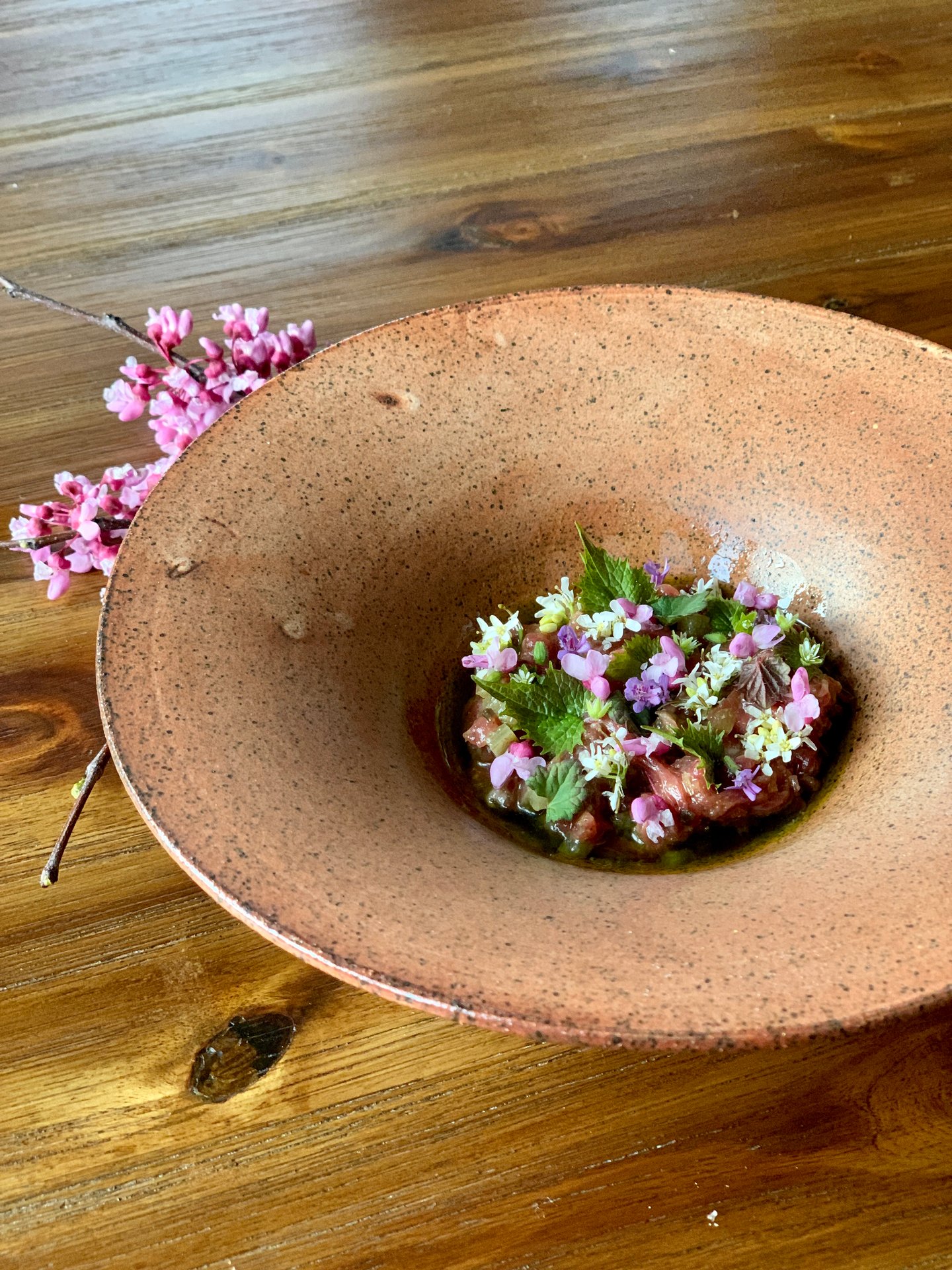 Oh, but when you post it make sure you don’t give too many details about how you made it or what’s in it. Fi-Di menus these days have a shorter character limit than a Twitter post, so you can only call out the most interesting parts if you want to be cool and not lame. Try something like “Raw spring lamb, garlic mustard, rose, flowers of the moment.”