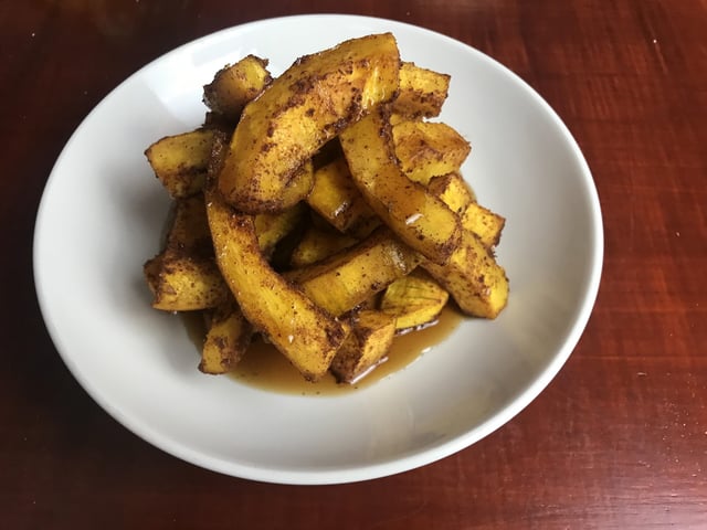 Drizzle the pumpkin with oil, grated nutmeg, and toss with the spices and salt.