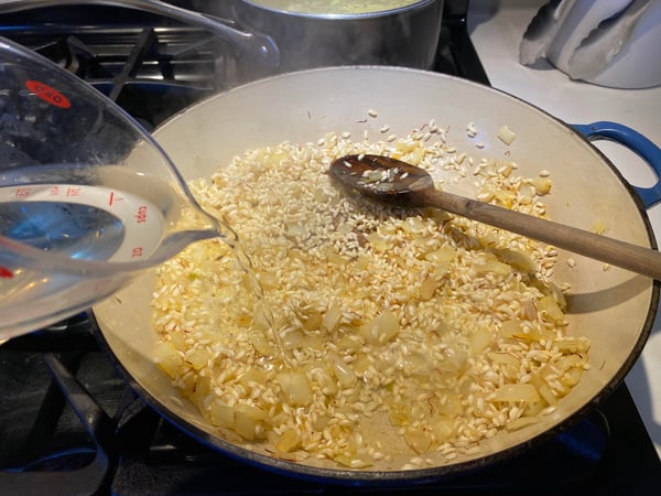 3. Stir, stir and stir some more! While cooking the risotto, stir the rice as much as you’re able. The stirring allows for the grains of rice to rub up against each other which helps release the starches in the rice creating a creamy consistency.