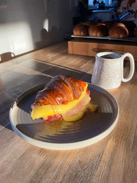 I used the residual heat from the pan I toasted the croissant in to just warm up the sliced ham.