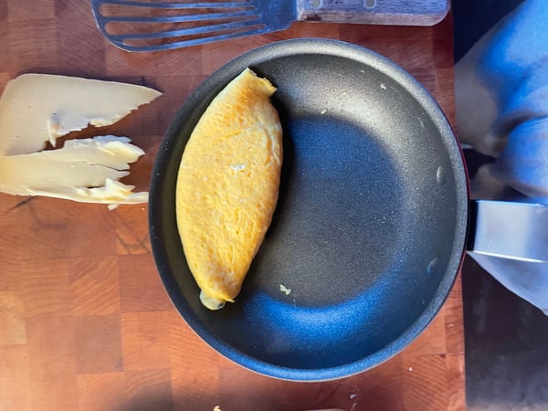 For the egg component, I swapped out the typical fried or scrambled egg for a classic French omelette. Besides being delicious the French omelette has the added benefit of being roughly the same shape as a croissant, so it makes the perfect egg component for a sandwich based around one.