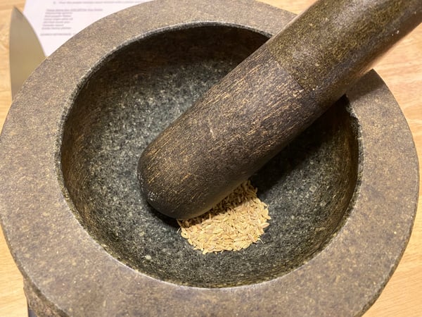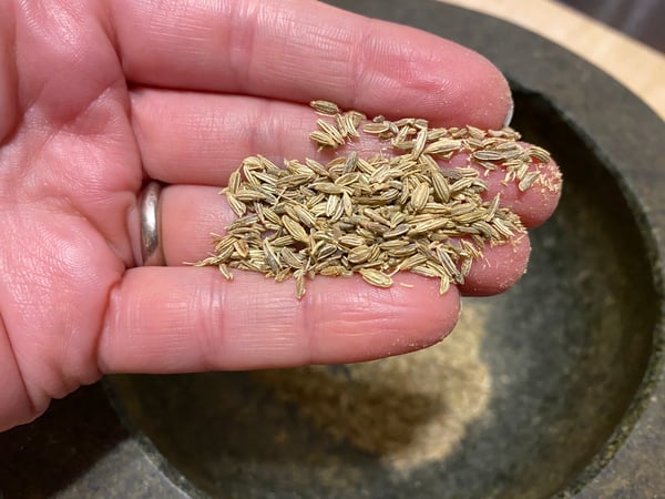 Spices and flavorings: I keep the seasoning for my sausage traditional by using a combination of crushed fennel seeds, sweet paprika, red pepper flakes, ground coriander, garlic, salt and pepper. This produces a “sweet” variety of sausage because of the addition of fennel seeds. You can use a mortar and pestle to lightly crush the fennel seeds, or simply rough chop them with your chef’s knife.