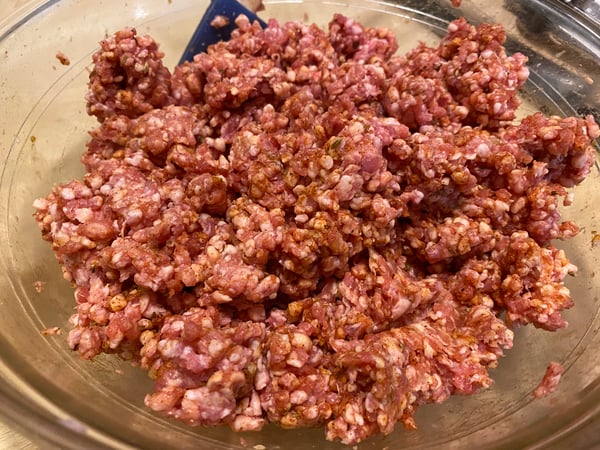 The most important part of making sausage, if you’re grinding your own meat, is to make sure the meat is as cold as possible. You want to keep the fat in solid pieces throughout the sausage for a better texture, and if your meat is not cold enough, the fat will shmear when it goes through the grinder compromising the texture.