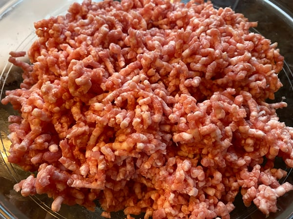 - Place the bowl of coarsely ground pork in the refrigerator.