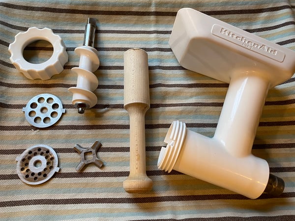 The first step to making Italian sausage is to make sure you have the proper tools. Because you’ll be grinding your own meat, you’ll need a meat grinder (see all the KitchenAid meat grinder parts pictured below), or you can use a food processor to “grind” the meat. The texture will be a bit different, but it will still be delicious.