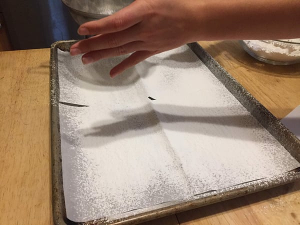 As you can probably imagine, this is a very tacky combination of ingredients. The way to prevent this from sticking everywhere is to use a mixture of powdered sugar and cornstarch to coat all of the marshmallow’s exterior surfaces (again, see recipe below for details). Full disclosure… be prepare to be covered in powdered sugar. Do not wear black while preparing these treats!
