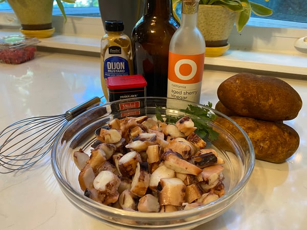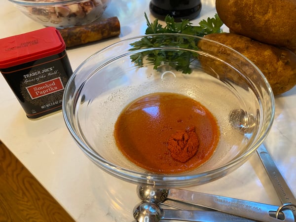 After looking around my kitchen, and discovering some potatoes that needed to get used up, I knew I wanted to channel the flavors of Spain and prepare an octopus and potato salad with a smoky paprika vinaigrette.