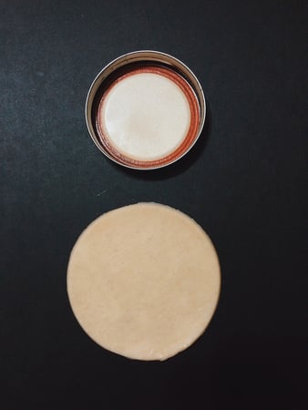 After the dough has been made and chilled, roll it out and cut a circle that’s a little bigger than your mason jar lid.