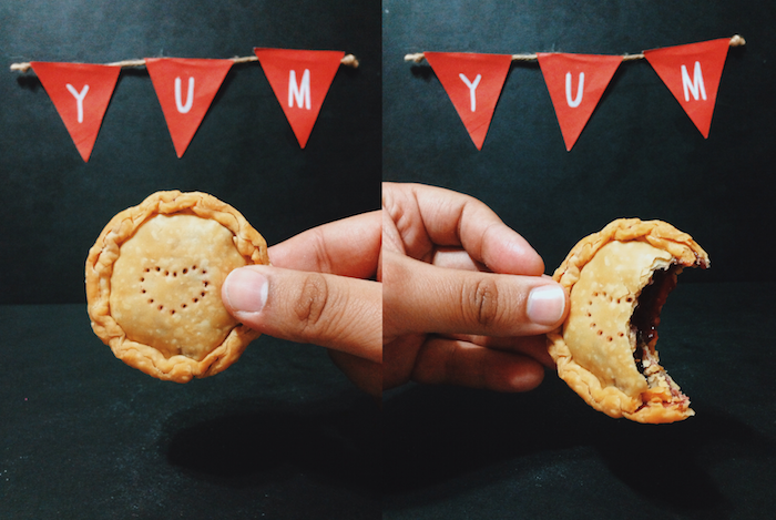 After you’ve swiped right on the filling of your choice, fill the pies and follow the baking instructions for whatever pie recipe you are using. Don’t forget to coat the top of your crust with egg and slice a little hole at the top to let the steam out.