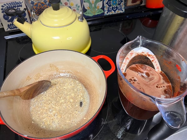 3. Blend together chile and broth until smooth and add to flour mixture.