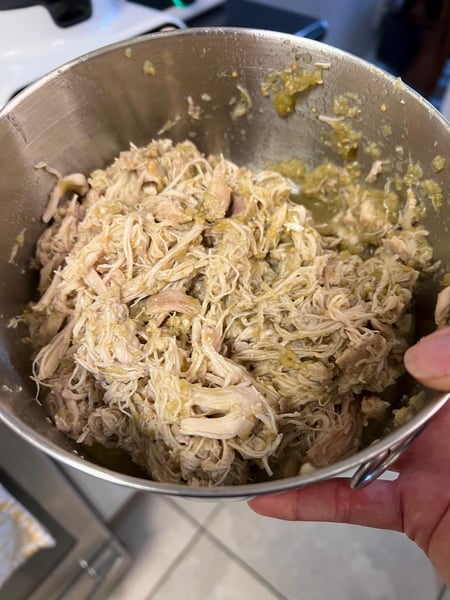3. Drain chicken and shred. Toss with last can of salsa verde and set aside.