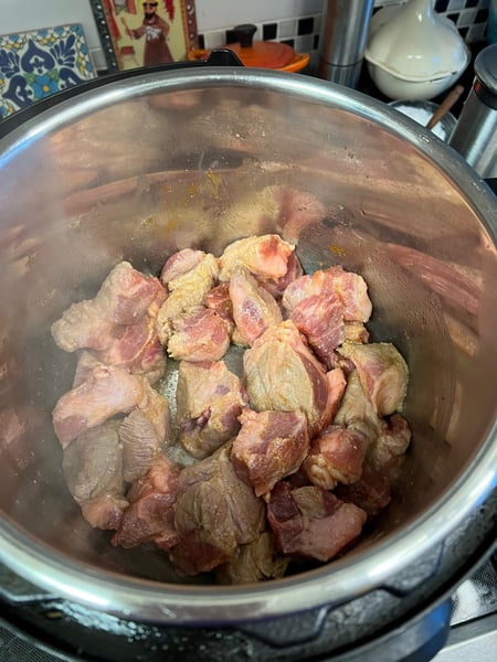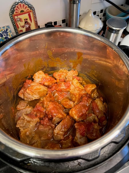First, let's tackle the fillings, both of which are also made in the Instant Pot. I wanted to offer options in the tamales so I chose Green Chile Chicken and Red Chile Pork. This is an ambitious process to do all in one day but if you have the time, it's definitely doable. You can also make the fillings ahead of time so you just cook the tamales rather than everything at one time.