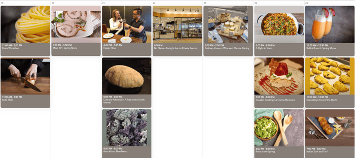 Pretty big difference, don't you think? Each class now has an image of one of the dishes featured in that class menu. Warning: mouth-watering will commence upon viewing our calendar now!
