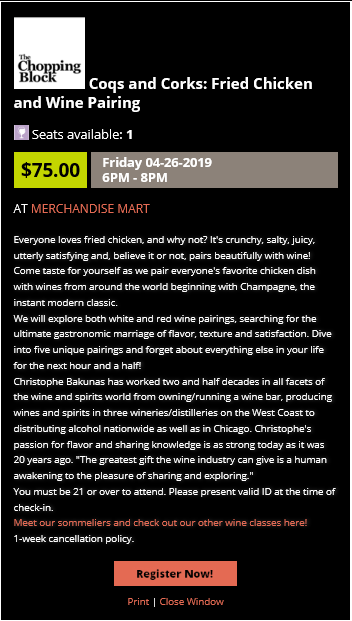 - Starting with May classes, we are moving to a pre-payment system which means you will pay for your class at the time of registration instead of on the day of the class. This switch will make class check-in a breeze, which means you'll get cooking, eating and drinking even faster!