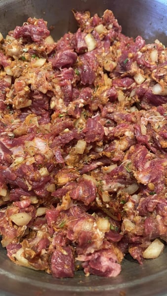 - 2 pounds boneless beef short ribs, finely chopped