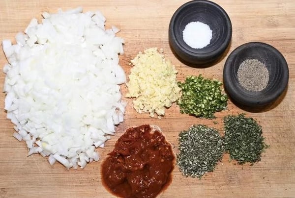 - 1 yellow onion, diced